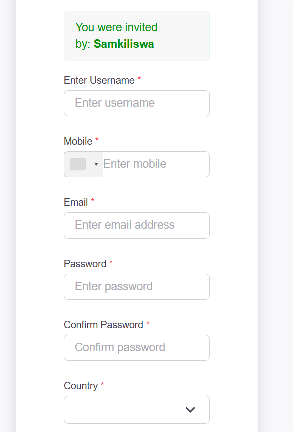 Note: The system automatically detects your country once you input your number.